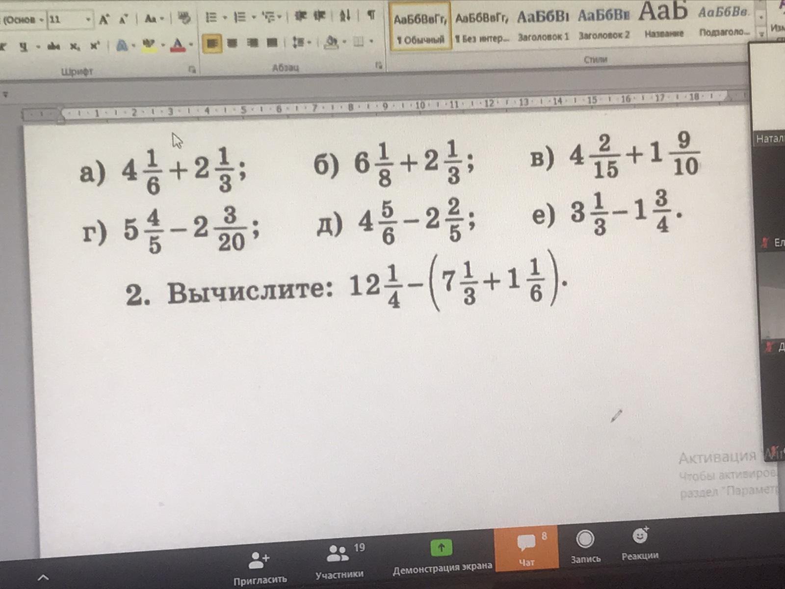Е) 3 1/3-1 3/4=19/12=1 7/12