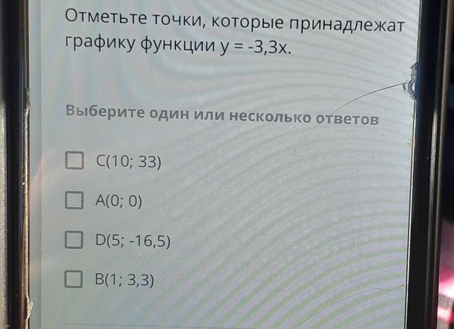 Точки А(0;0), D(5;-16.5) принадлежат графику.