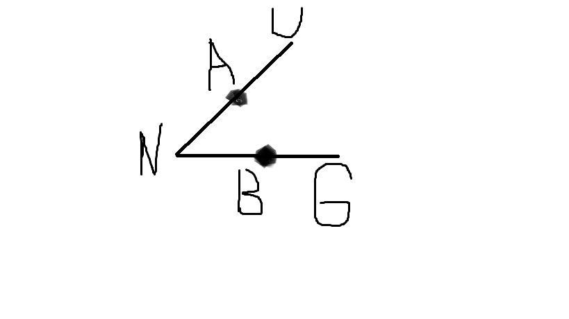 Выполните рисунок,соответствующий описанной ситуации.Точки A,B принадлежат острому углу UNG,а отрезки (AN) и (BN) конгруэнтны.