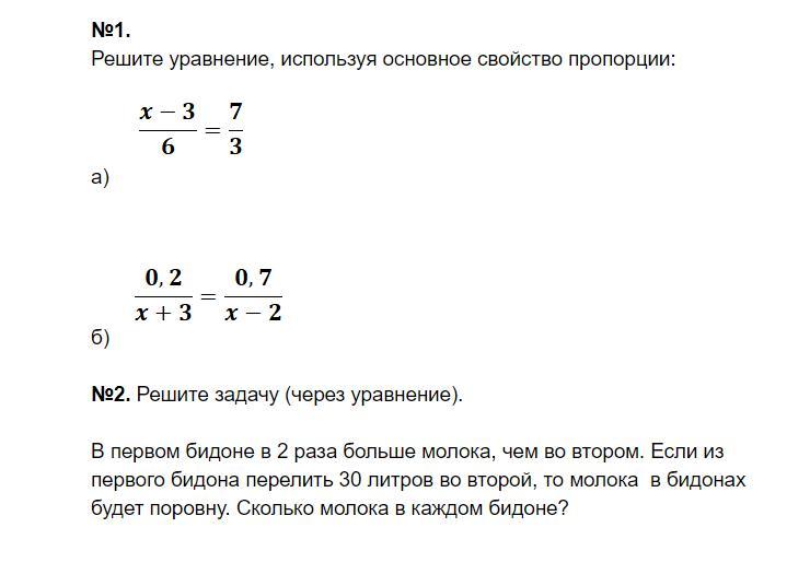 Пусть в первом бидоне первоночально было х л молока,тогда во втором 2х л. После того как в первый бидон долили 12 л, в нем стало (12+х) л, а когда из второго взяли 6л,там осталось (2х-6) л. Т.к. после этогго в бидонах стало поровну молока, составим и решим уравнение: