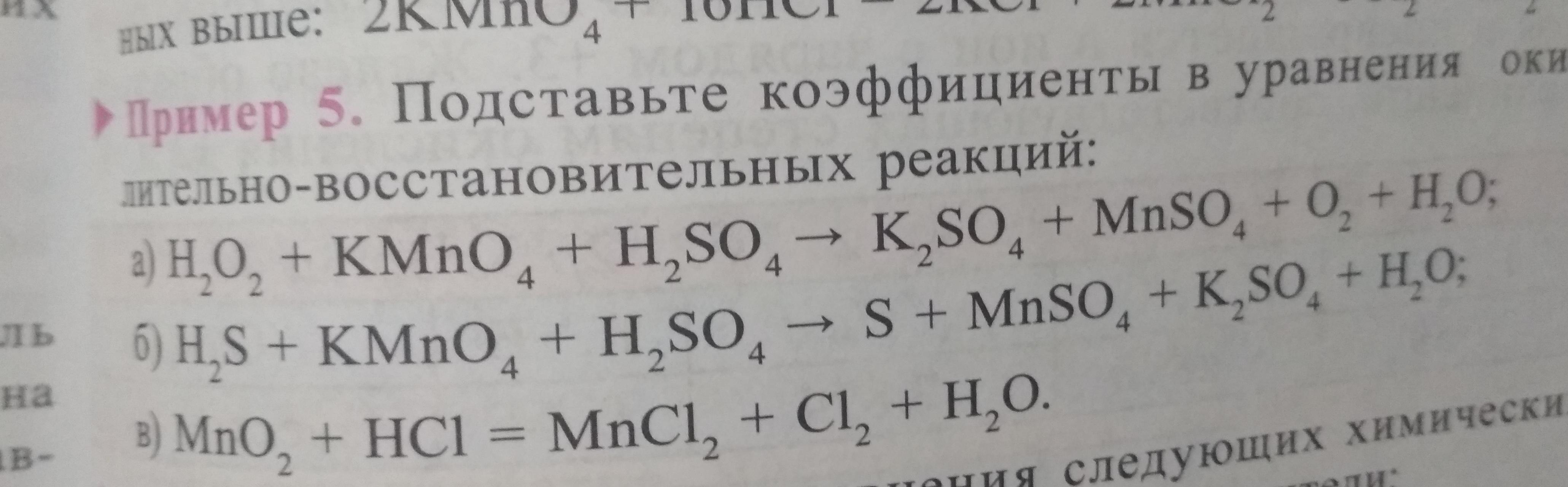 2) 5H2S + 2KMnO4 + 2H2SO4 -> 5S + 2MnSO4 + K2SO4 + 8H2O