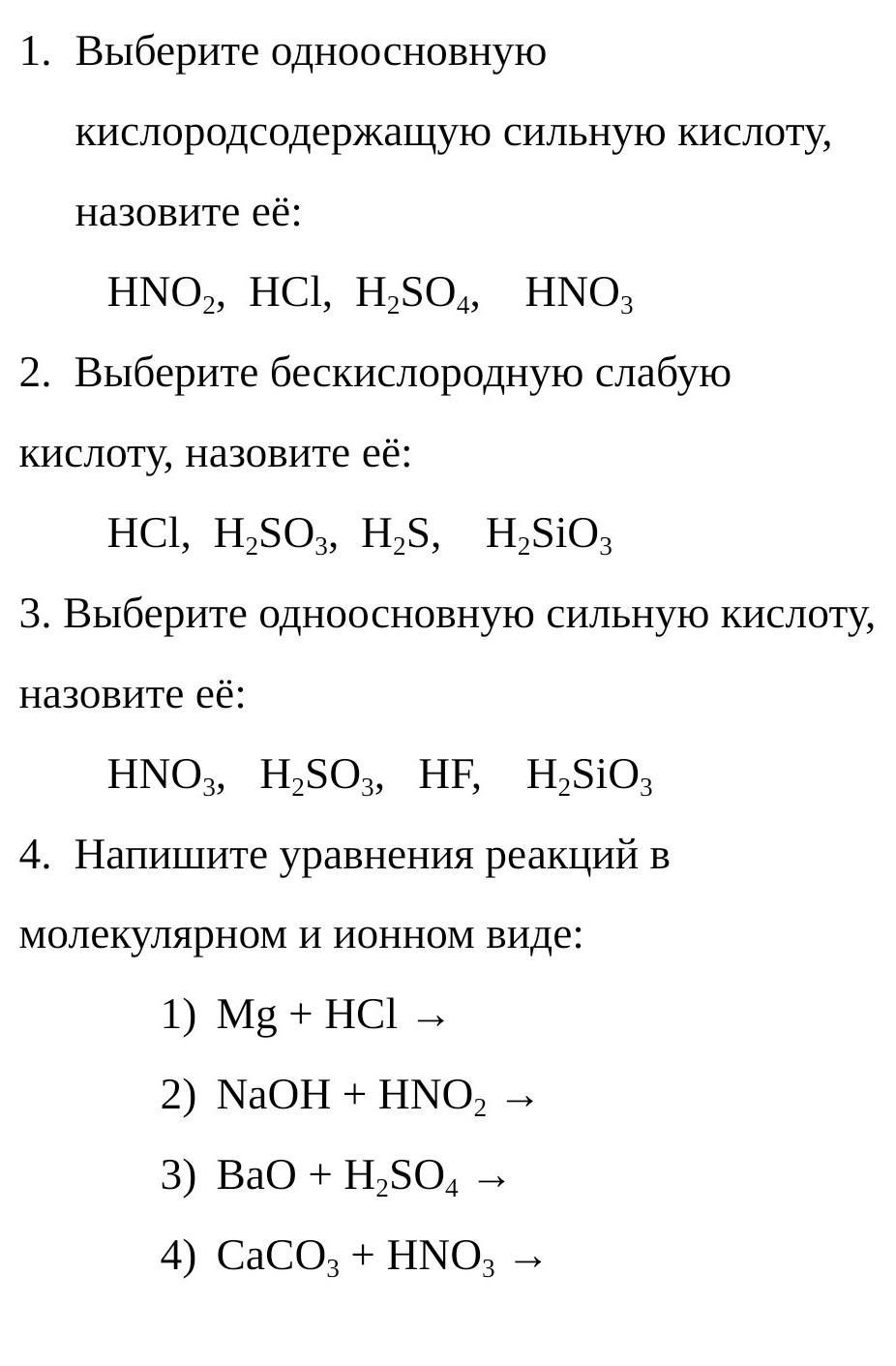 4. 1) Mg + 2HCl = MgCl₂ + H₂ - на ионы не раскладывается
