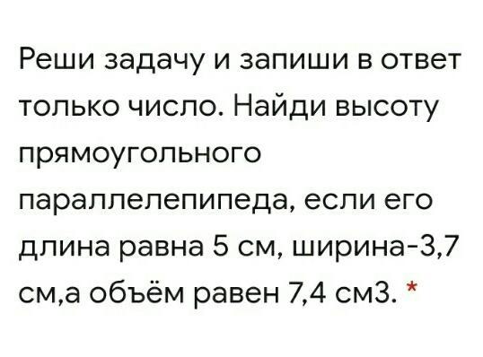 h=V/S=7,4/18,5=0,4 см.