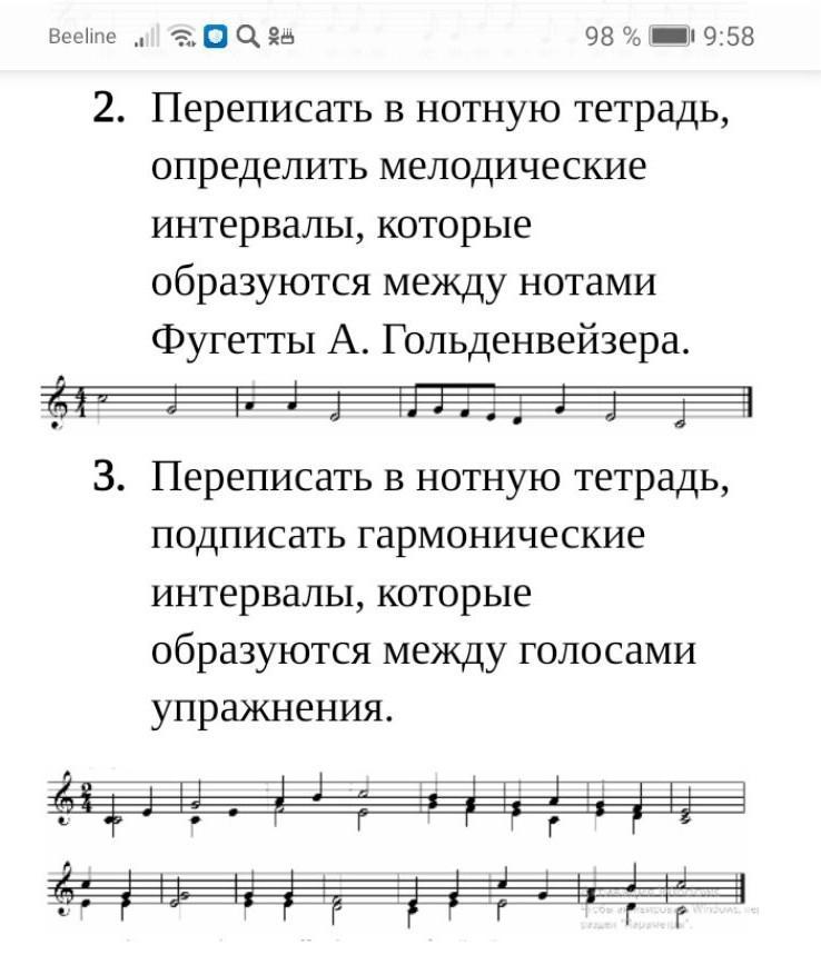 Определите мелодические интервалы которые образуются между нотами Фугетты А. Гольденвейзера (номер 2,3)