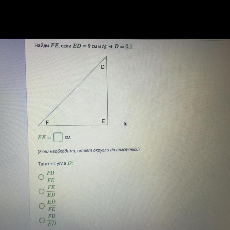 tgD=FE/ED, FE=0,9