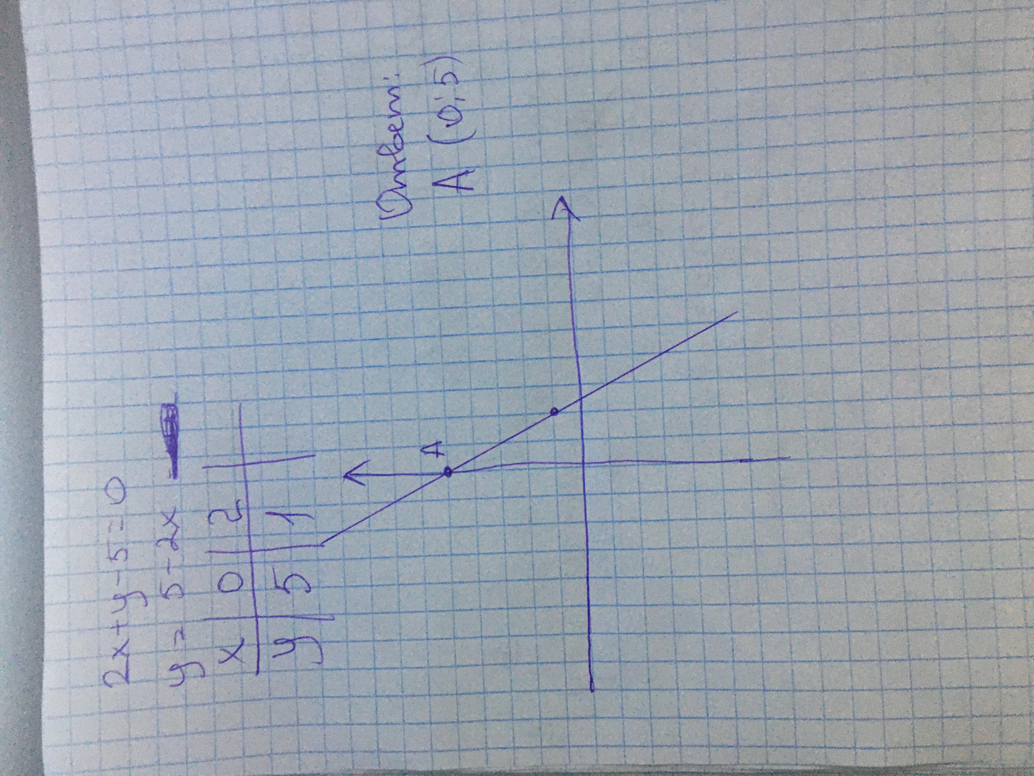 Постройте график уравнения 2х +у -5 = 0 и найдите координаты точки пересечения графика с осью ординат.