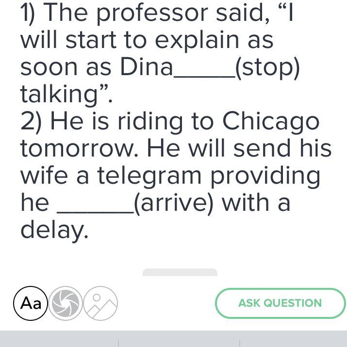1) The professor said, "I will start to explain as soon as Dina (stops) talking".