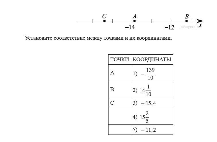 Установите соответствие между точками и их координатами.