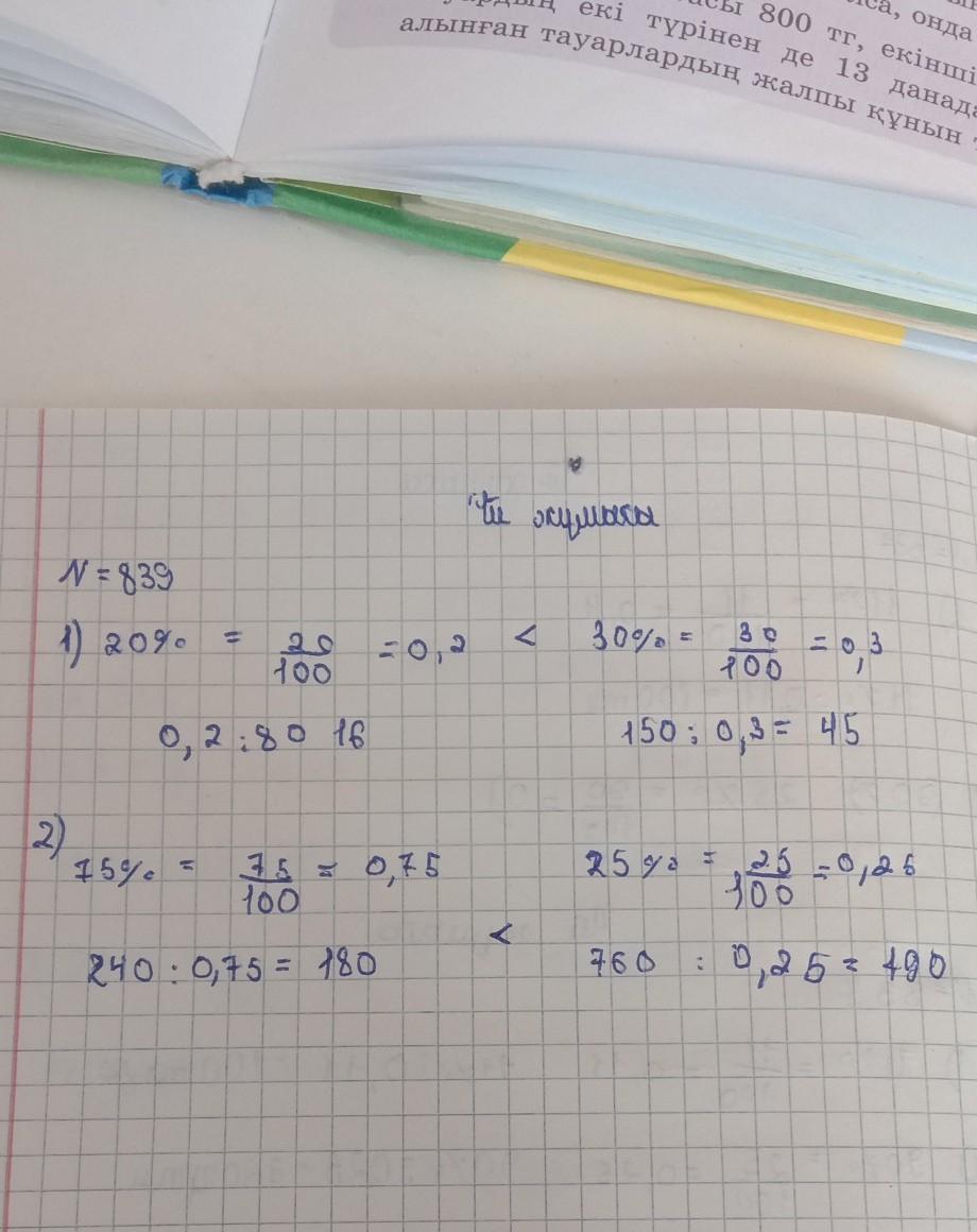 - 1) 80 санының 20%-ын табыңдар және 150 санының 30%-ыменсалыстырыңдар. 2) 240 санының 75%-ын табыңдар және 760 саны-ның 25%-ымен салыстырыңдар.