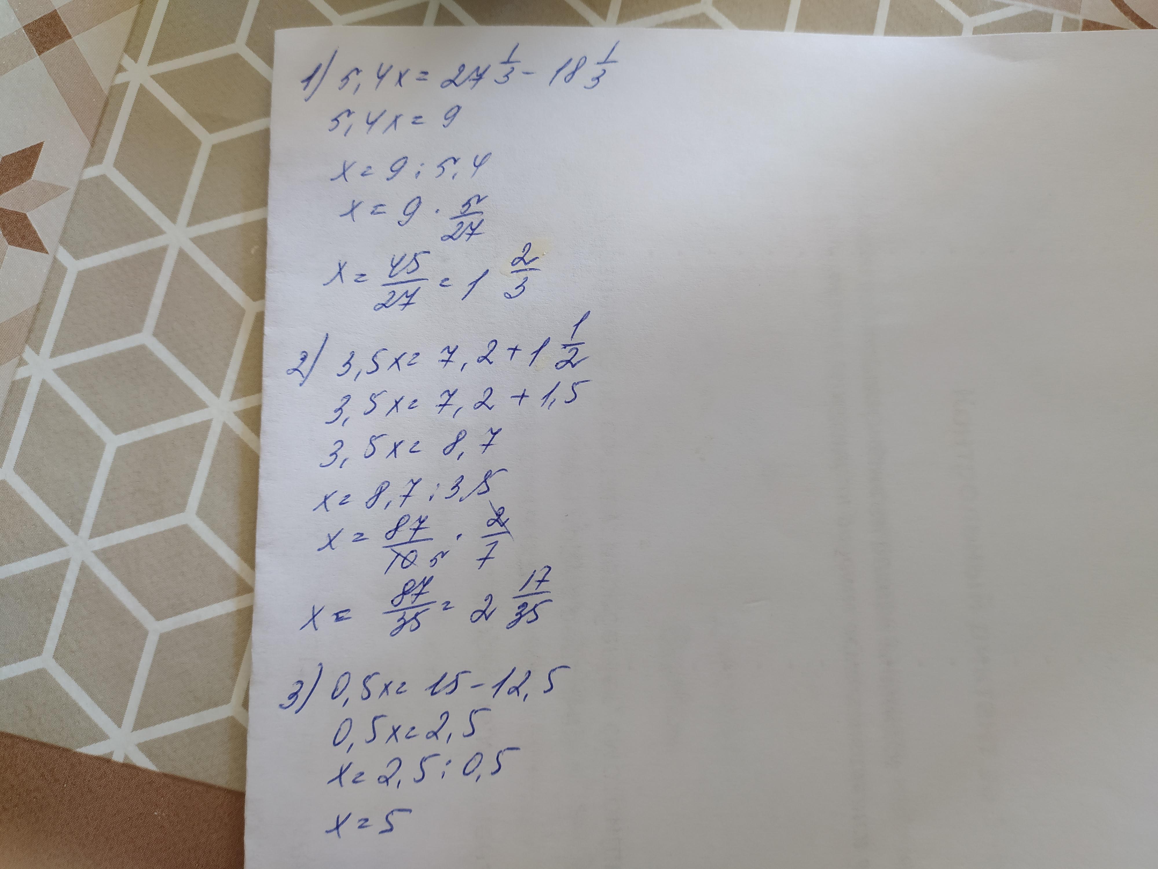 1)27 1/3-5,4x=18 1/3 ( двадцать семь целых одна третья -5,4х= восемнадцать целых одна третья.