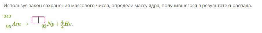Используя закон сохранения массового числа, определи массу ядра, получившегося в результате α-распада.