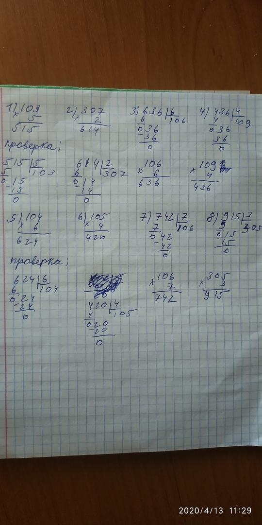 103*5=515 307*2=614 636:6=106 436:4=109 104*6=624 105*4=420 742:7=106 915:3=305