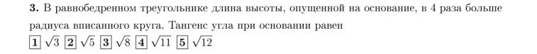 Тогда по формуле радиуса вписанного в равнобедренный треугольник, радиус равен