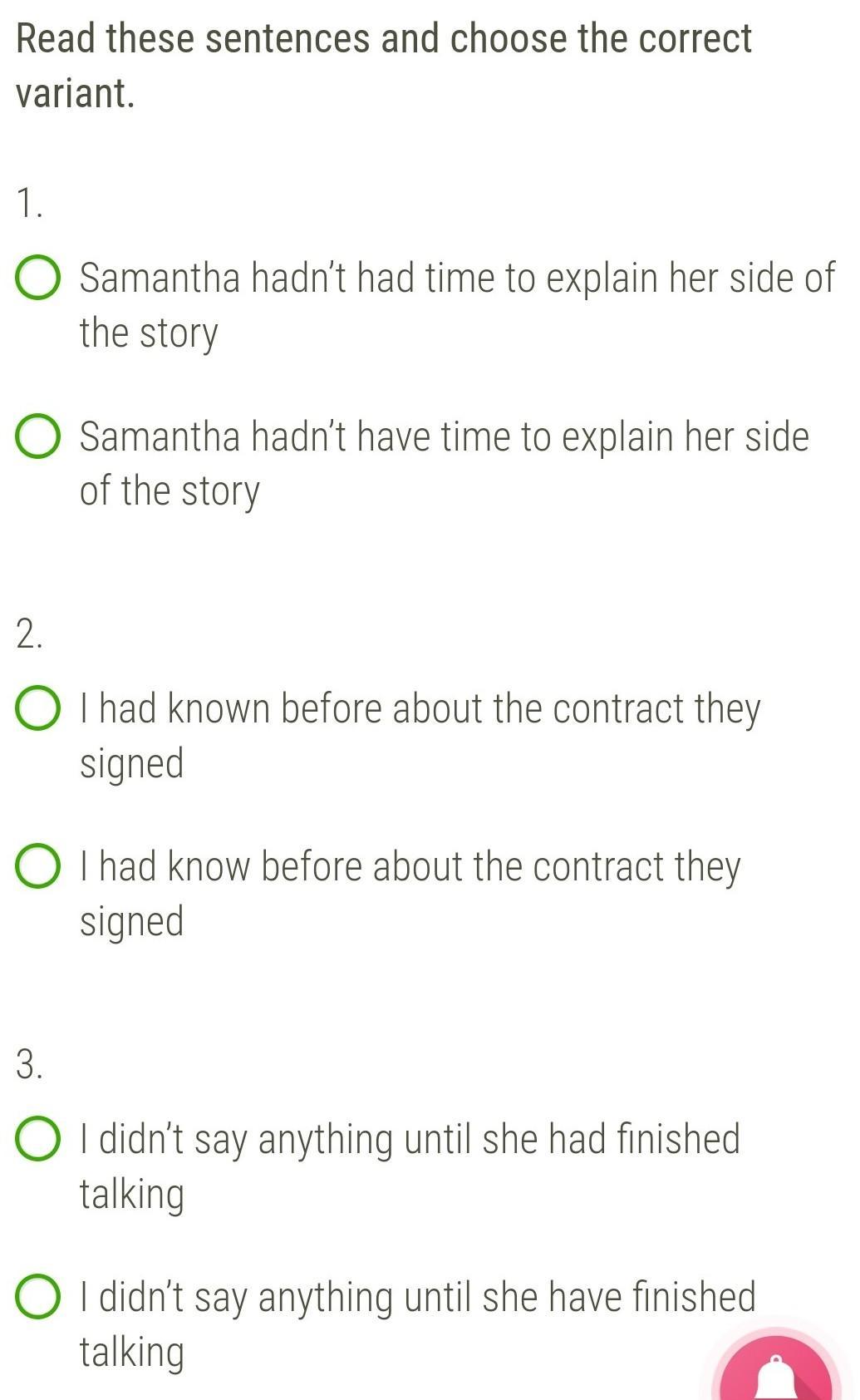 3. Until she had finished