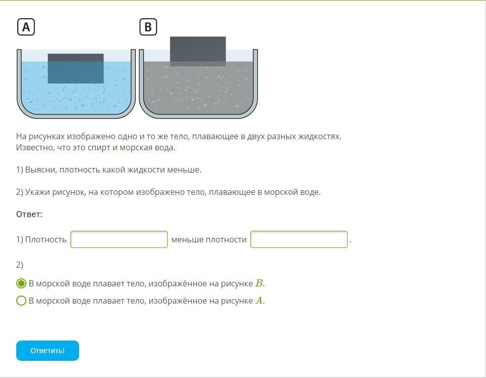 В среднем плотность морской воды равна 1,025 грамма на кубический сантиметр