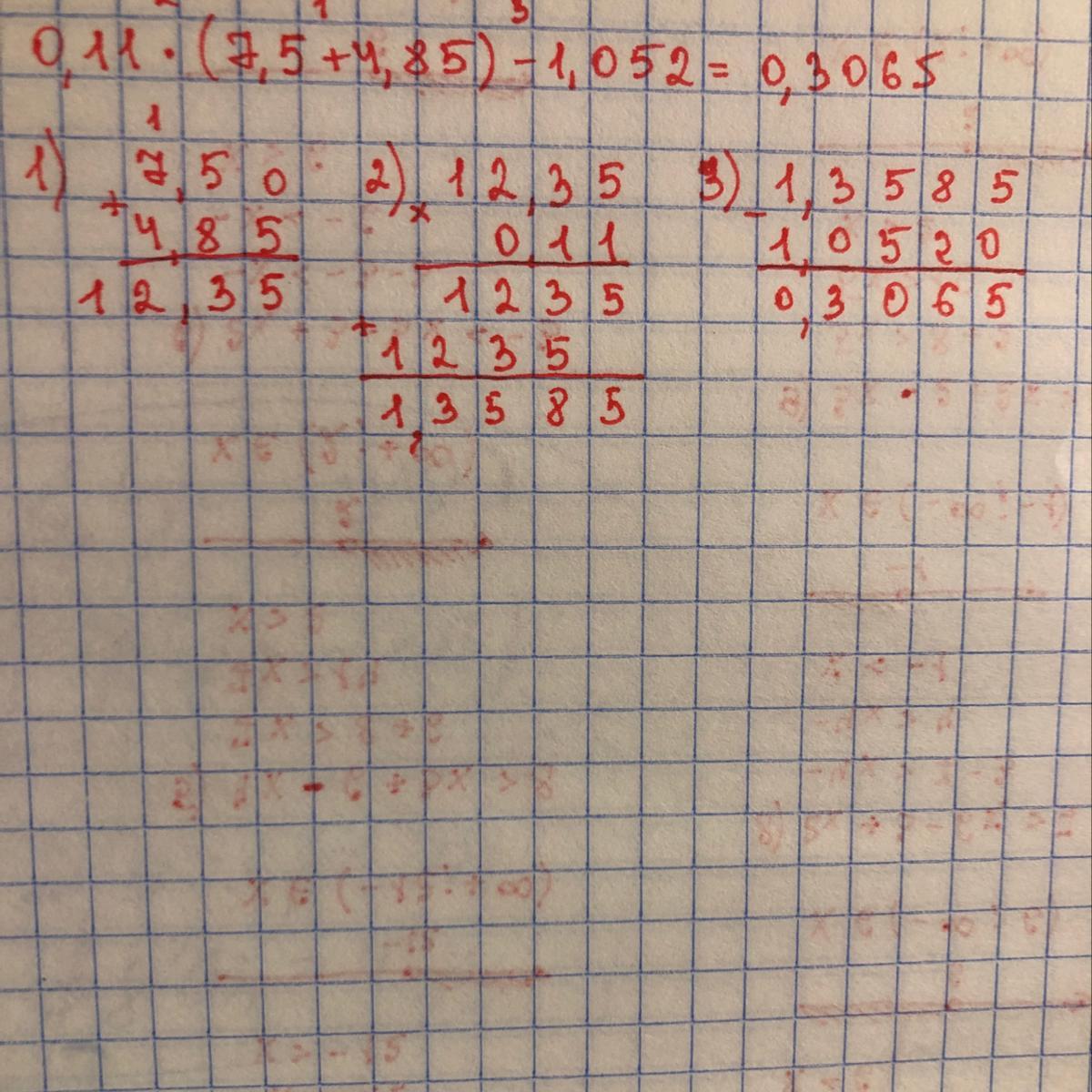 Найдите пожалуйста значение выражения: 0,11⋅(7,5+4,85)−1,052. Мне очень нужно. Заранее спасибо