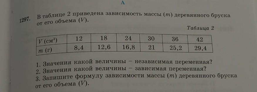 2) Масса т.к указано что таблица зависимости массы бруска от его объема