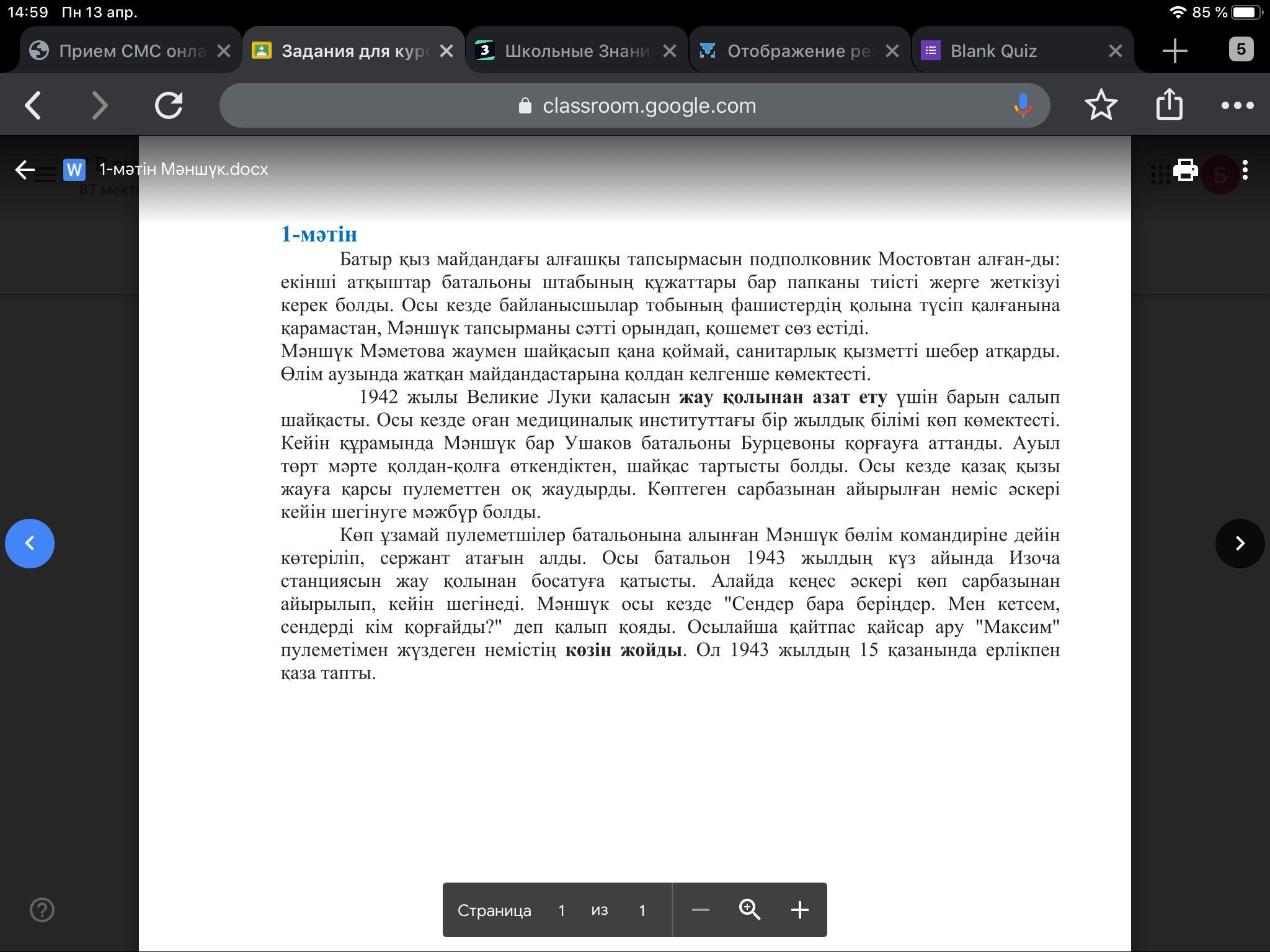 4) 1-мәтіннің тілдік ерекшелігін жазыңыз (көнерген сөздер, қару-жарақ атаулары, мақал-мәтел, афоризмдер, терминдер, т.б.)