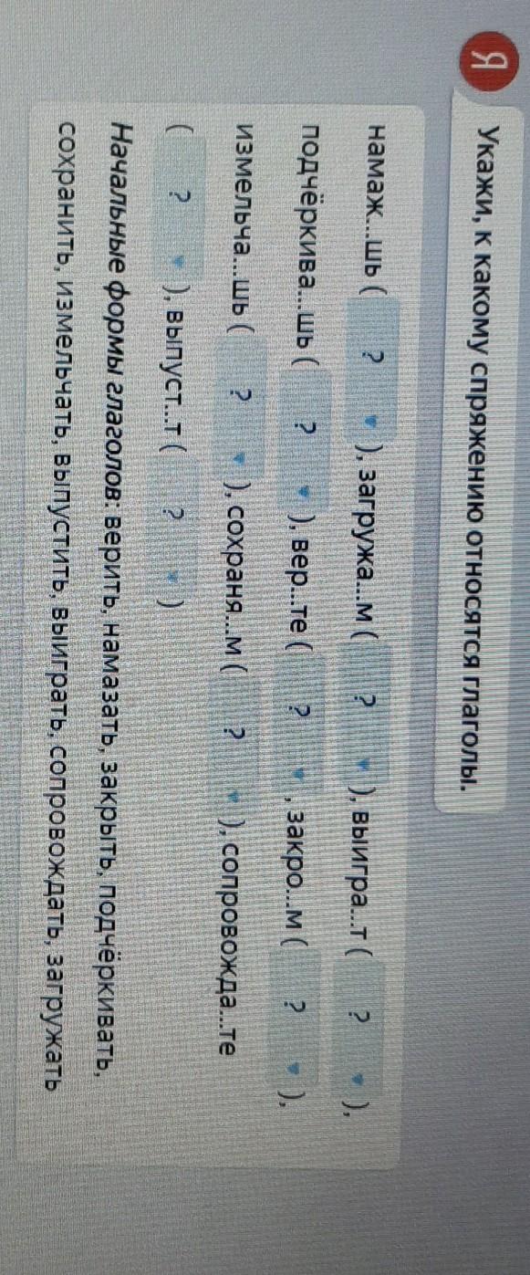 Начальные формы глаголов, верить, намазать, закрыть, подчёркивать,