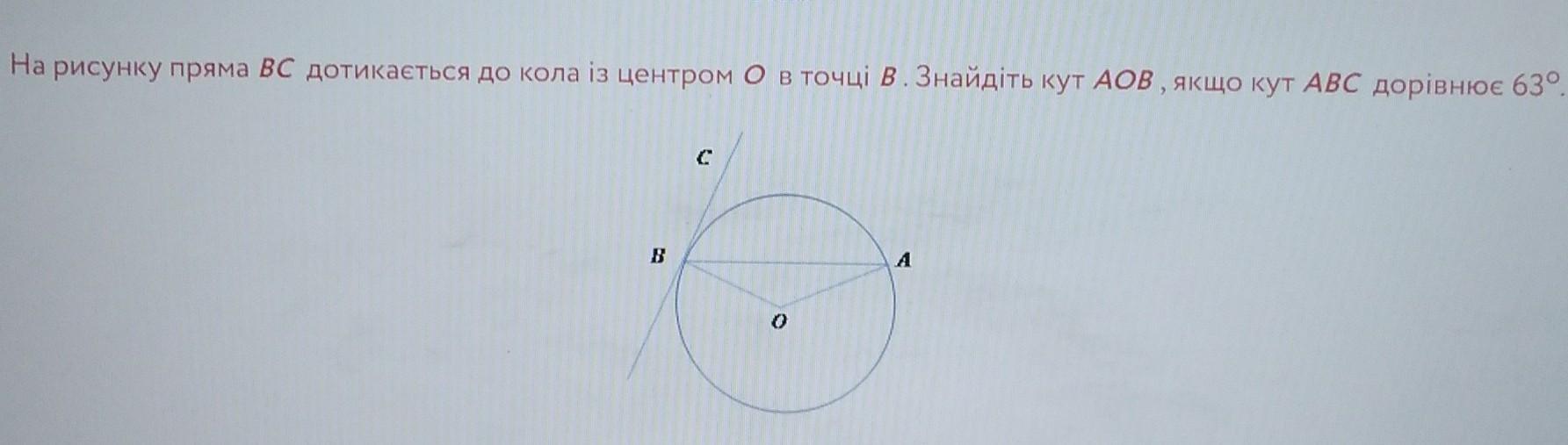 ∠ABC = (град.мера◡ AB) / 2 =(1/2)∠AOB =63° /2 = 36,5°