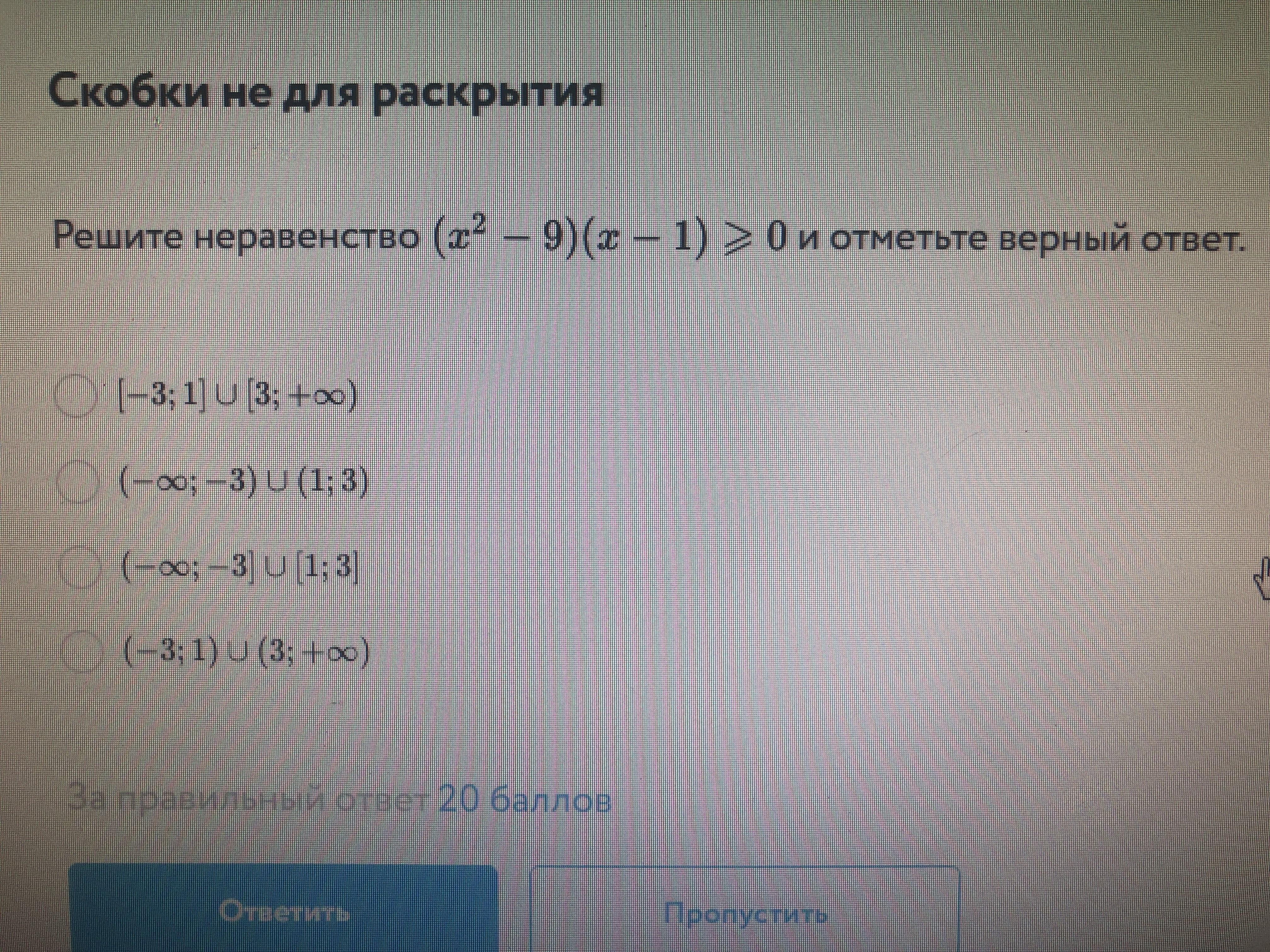 решите неравенство (x^2-9)(x-1)>0 и отметьте верный ответ