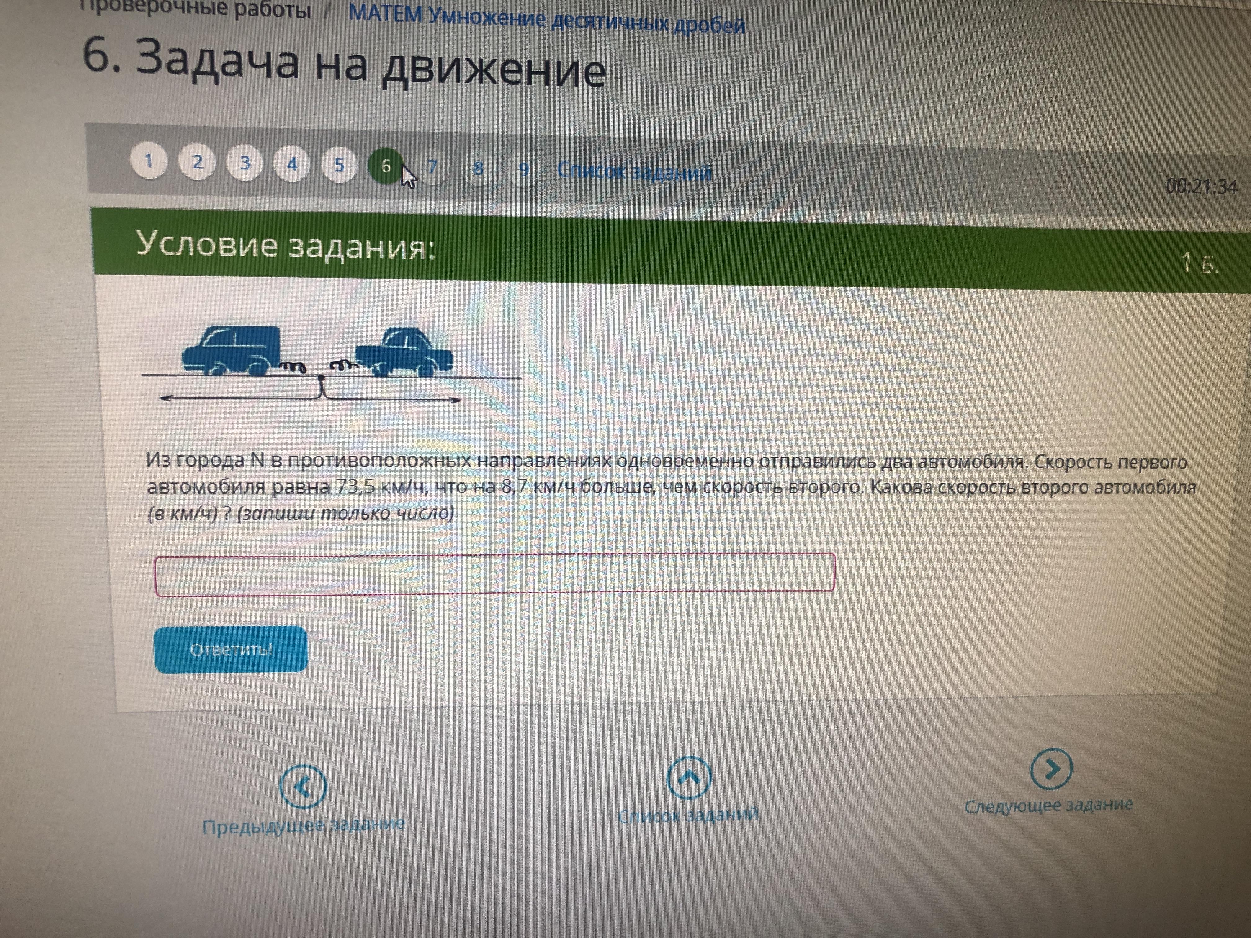 73.5 - 8.7= 64.8 км/ч скорость 2го автомобиля.