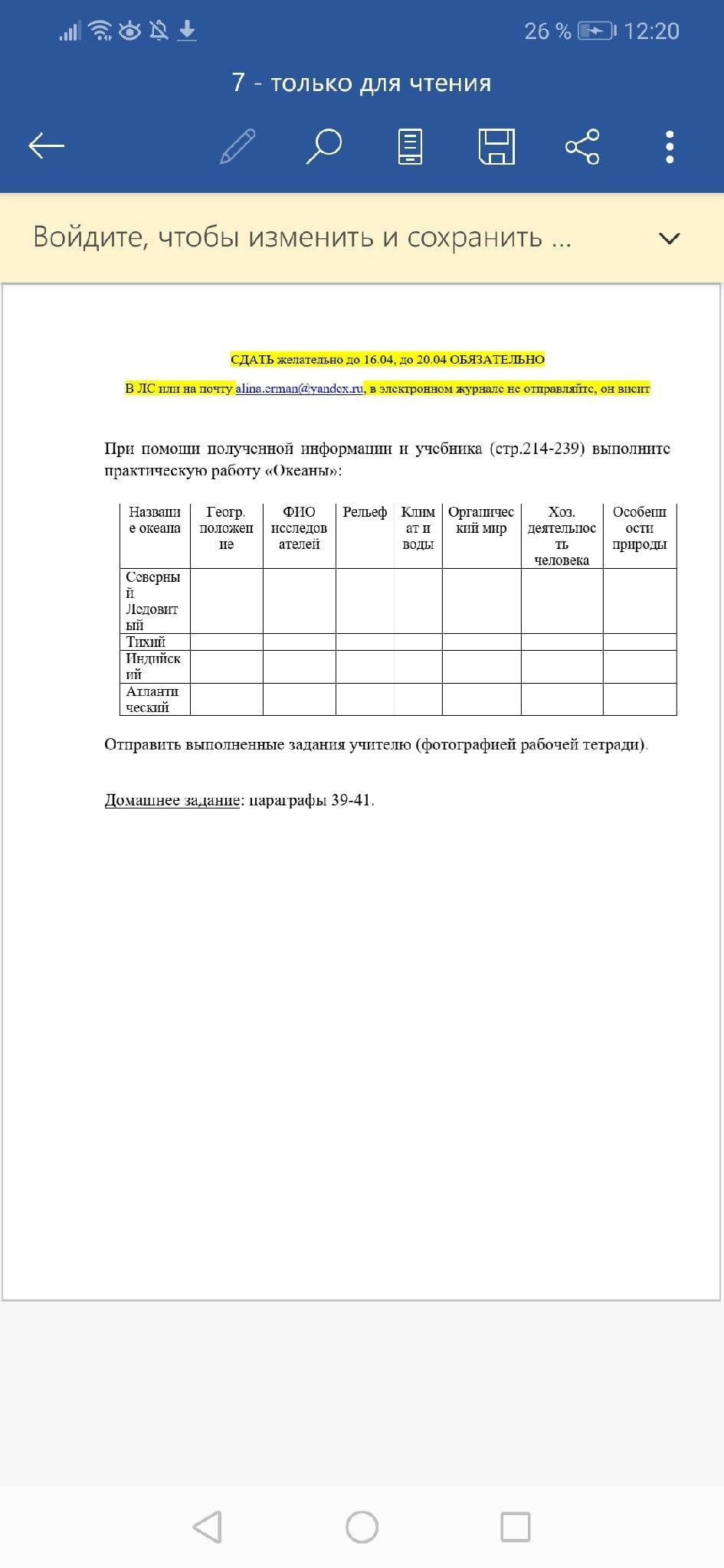 Таблица "Океаны" 7 класс И. В. Душина, В. А. Коринская, В. А. Щенев.