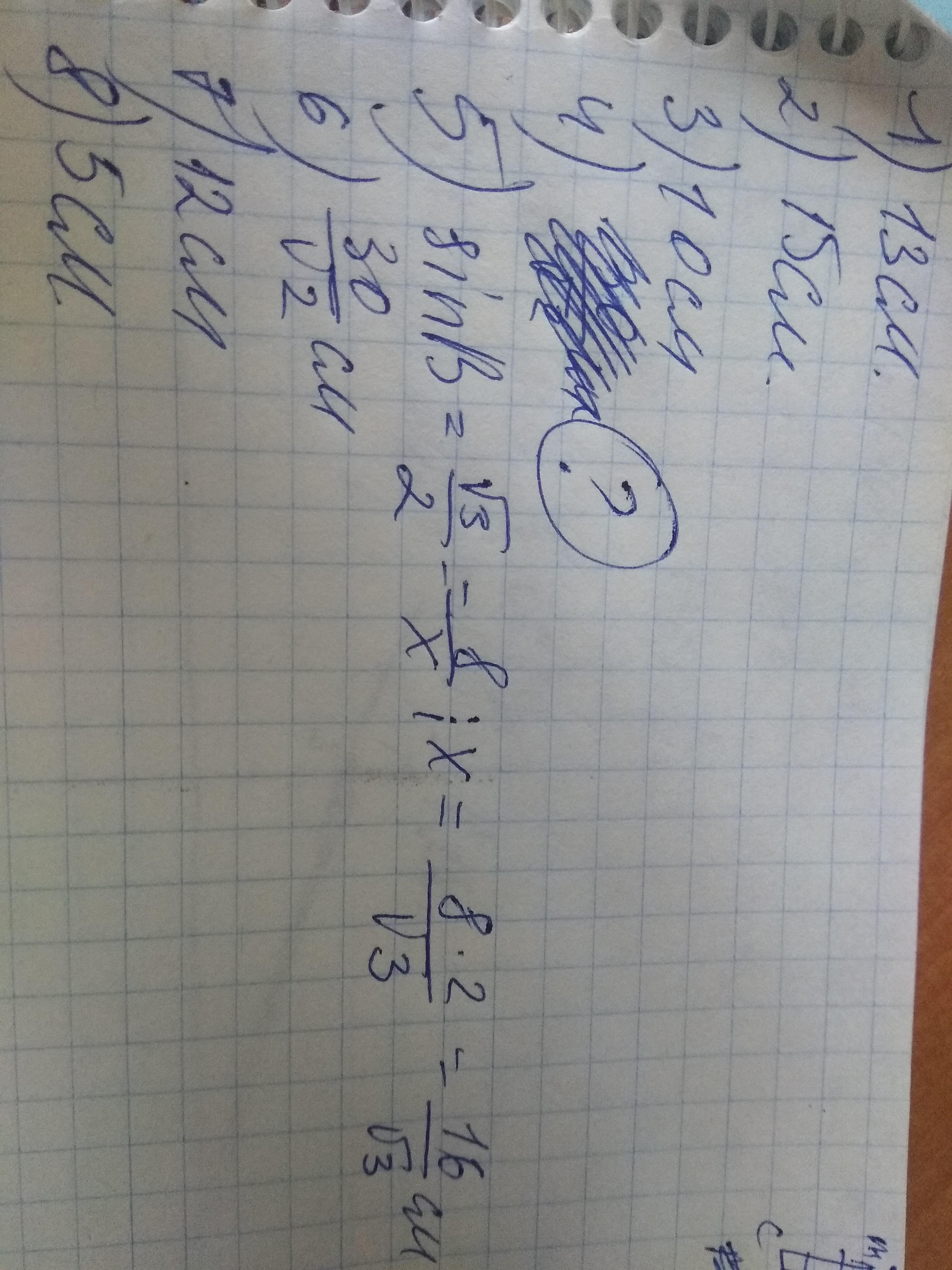 5)Угол B равен 60 градусов, а треугольник равнобедренный => угол С = 60 => угол А равен 180-60-60=60. АМ высота равностороннего треугольника, значит она и высота, и биссектриса => угол ВАМ равен 60:2=30. Проведём высоту к стороне АВ от точки М и назовём основание высоты К, МК = 1/2 * 8 = 4 (Угол в 30 градусов)