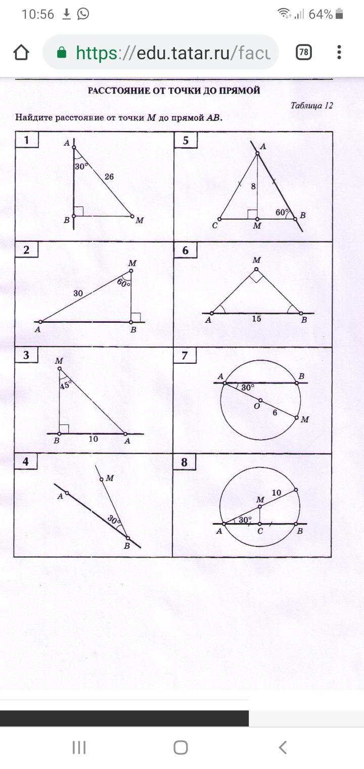 8) Тоже самое, AM радиус равен 10, угол А = 30 => MC = 1/2*10=5