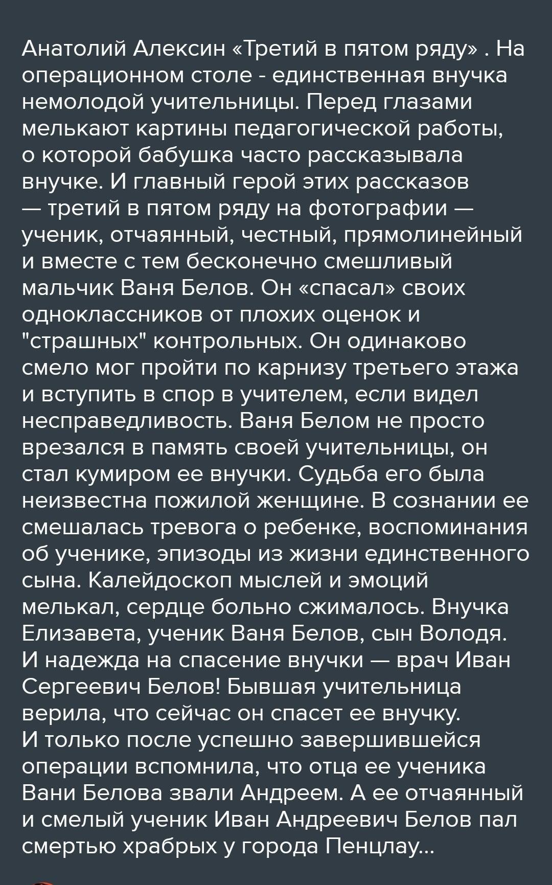 1)О чем книга А.Алексина «Третий в пятом ряду»?