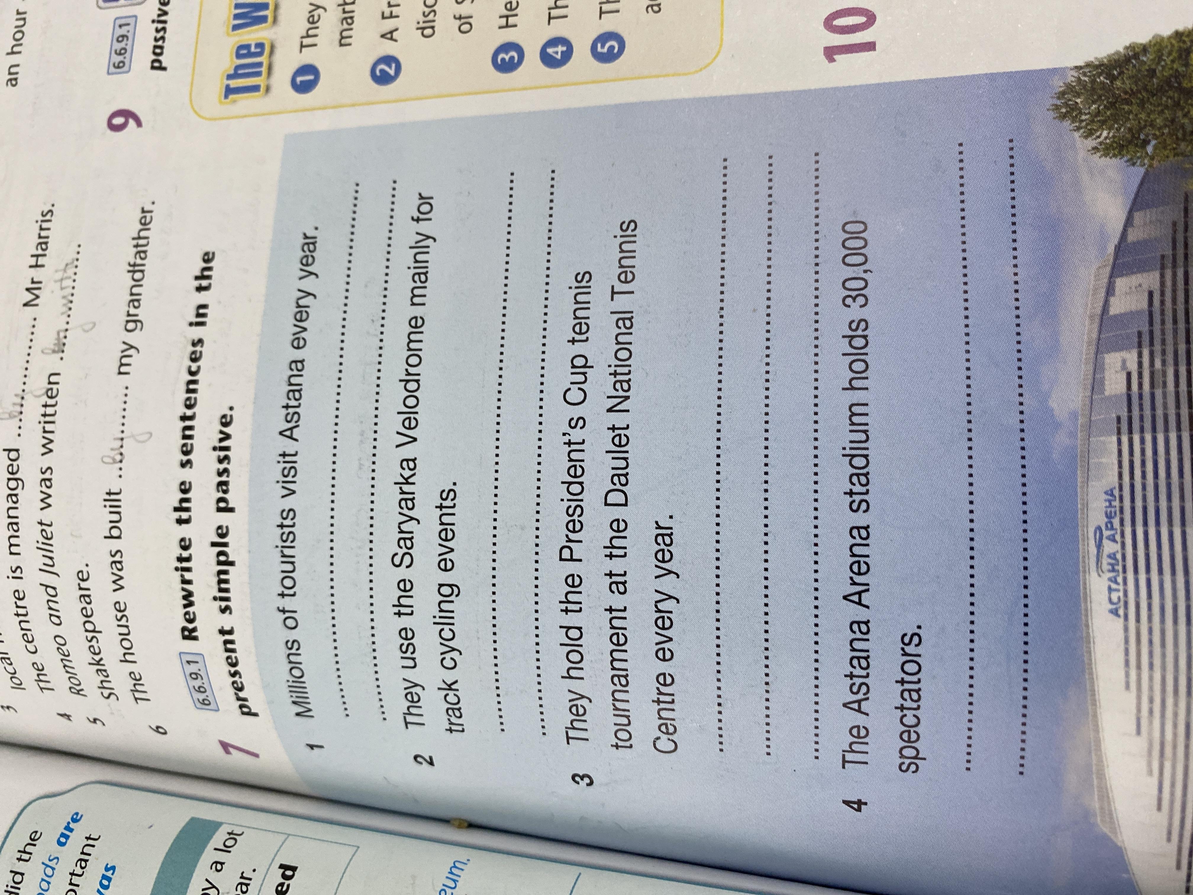 Пояснення:Astana is visited by millions of tourists every year. The Saryarka Velodrome is used mainly for track cycling events. The President's Cup tennis tournament is held at the Daulet National Tennis Center every year. 30000spectators are held in the Astana Arena stadium