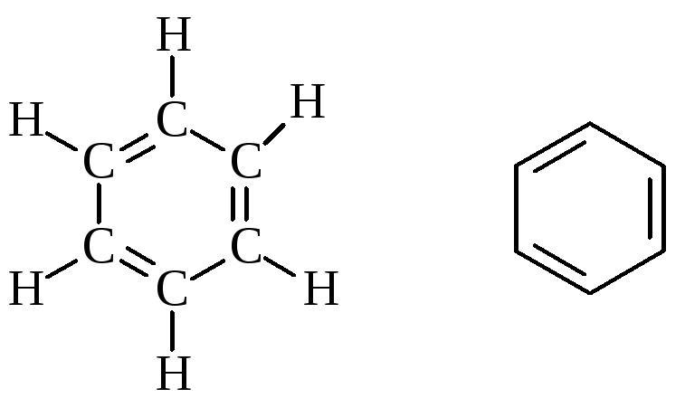 Также бензол можно представить в виде двух структурных формул, одна из которых более полная а другая более краткая (см фото). На фото отчётливо видны бензольные кольца.