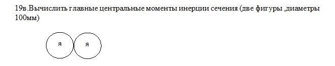Вычислить главные центральные моменты инерции сечения (две фигуры ,диаметры 100мм)