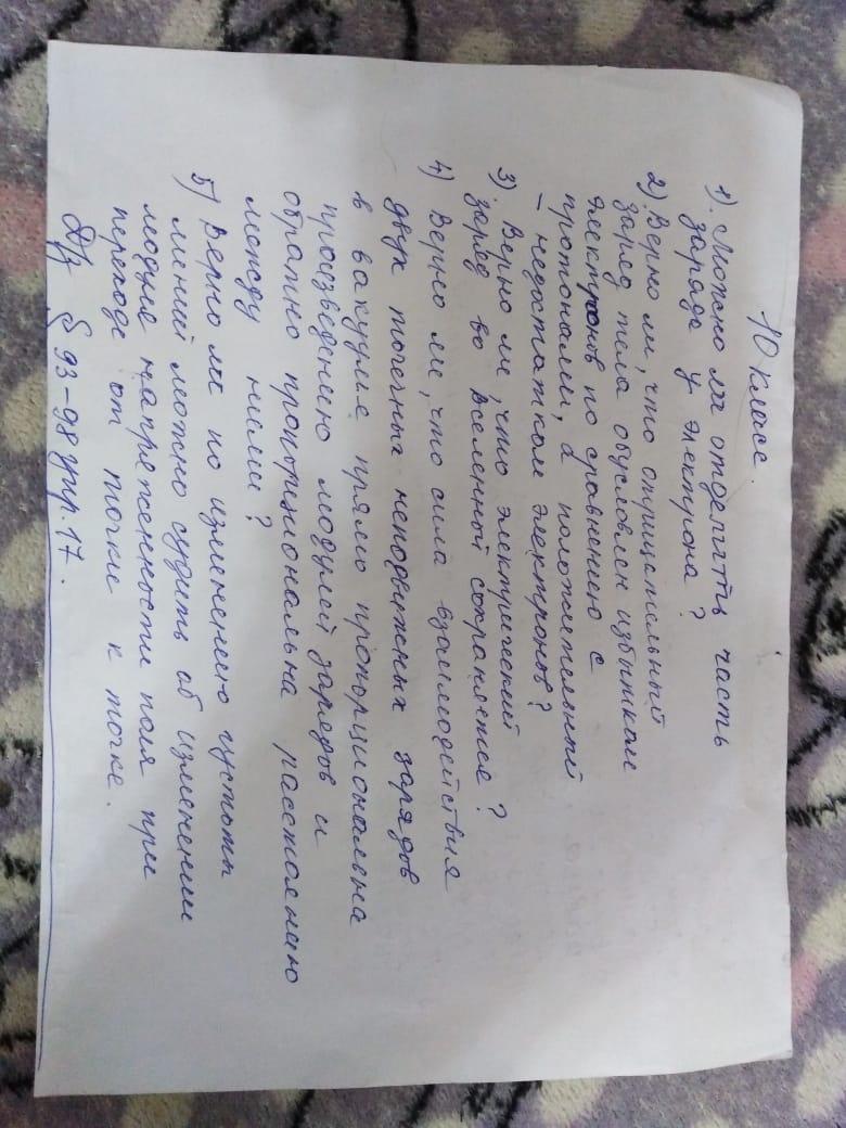 3) Верно ли, что электрический заряд во вселенной сохраняется?