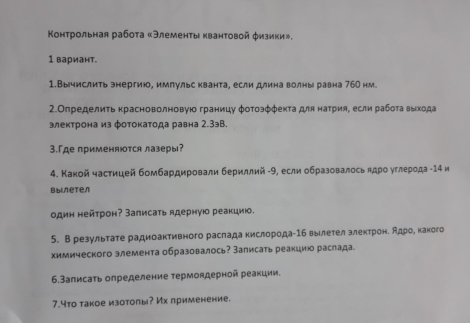 Здавствуйте, контрольная на карантин по теме Квантовая физика. Решившему 30 баллов.