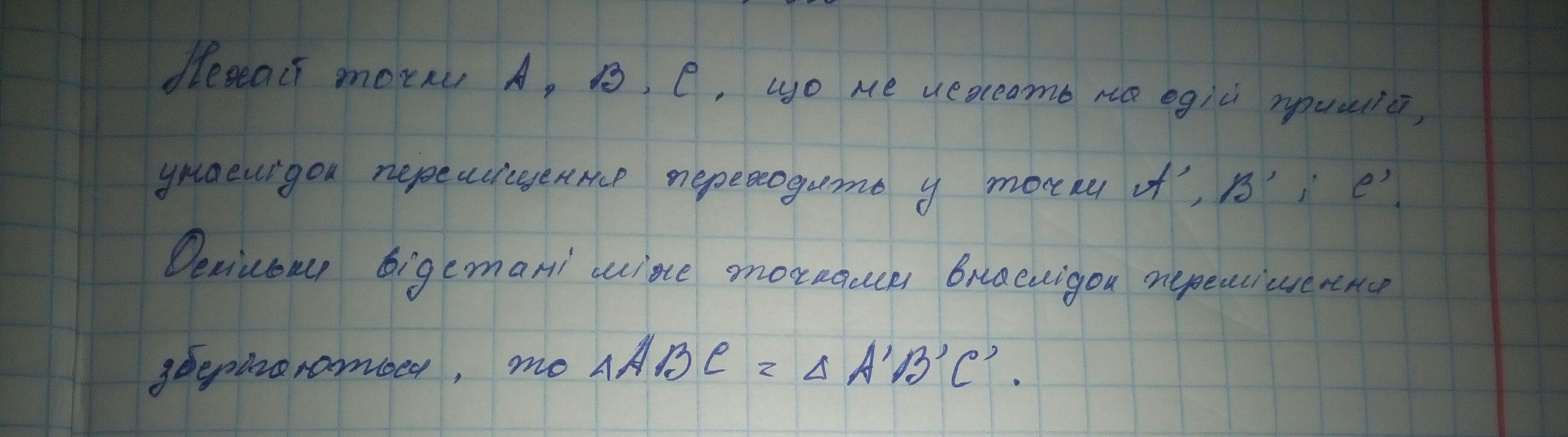 Точки а, в і с не лежать на одній прямій і під час переміщення переходять у точки а', в' і с' відповідно. доведіть рівність трикутників авс і а'в'с'.