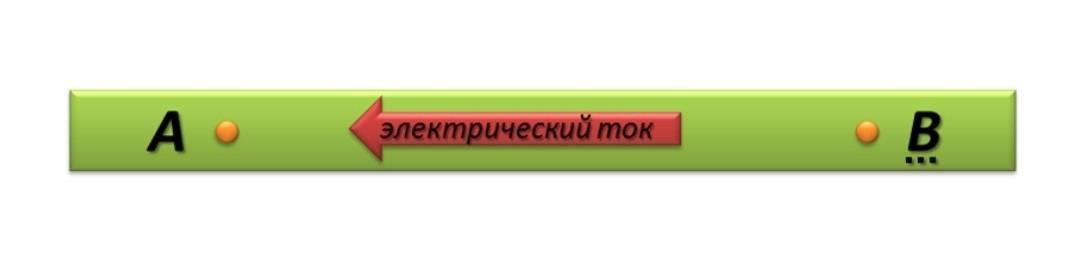Обрати внимание, что точки A и B находятся с разных сторон от проводника (точка A — спереди, а точка B — сзади).