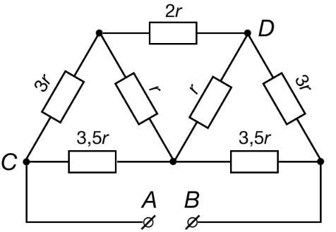 ПОМОГИТЕ ПОЖАЛУЙСТА! Задача: Выводы A и B схемы, изображённой на рисунке, подключены к батарейке с напряжением 3,5 В. Известно, что r=100 Ом.