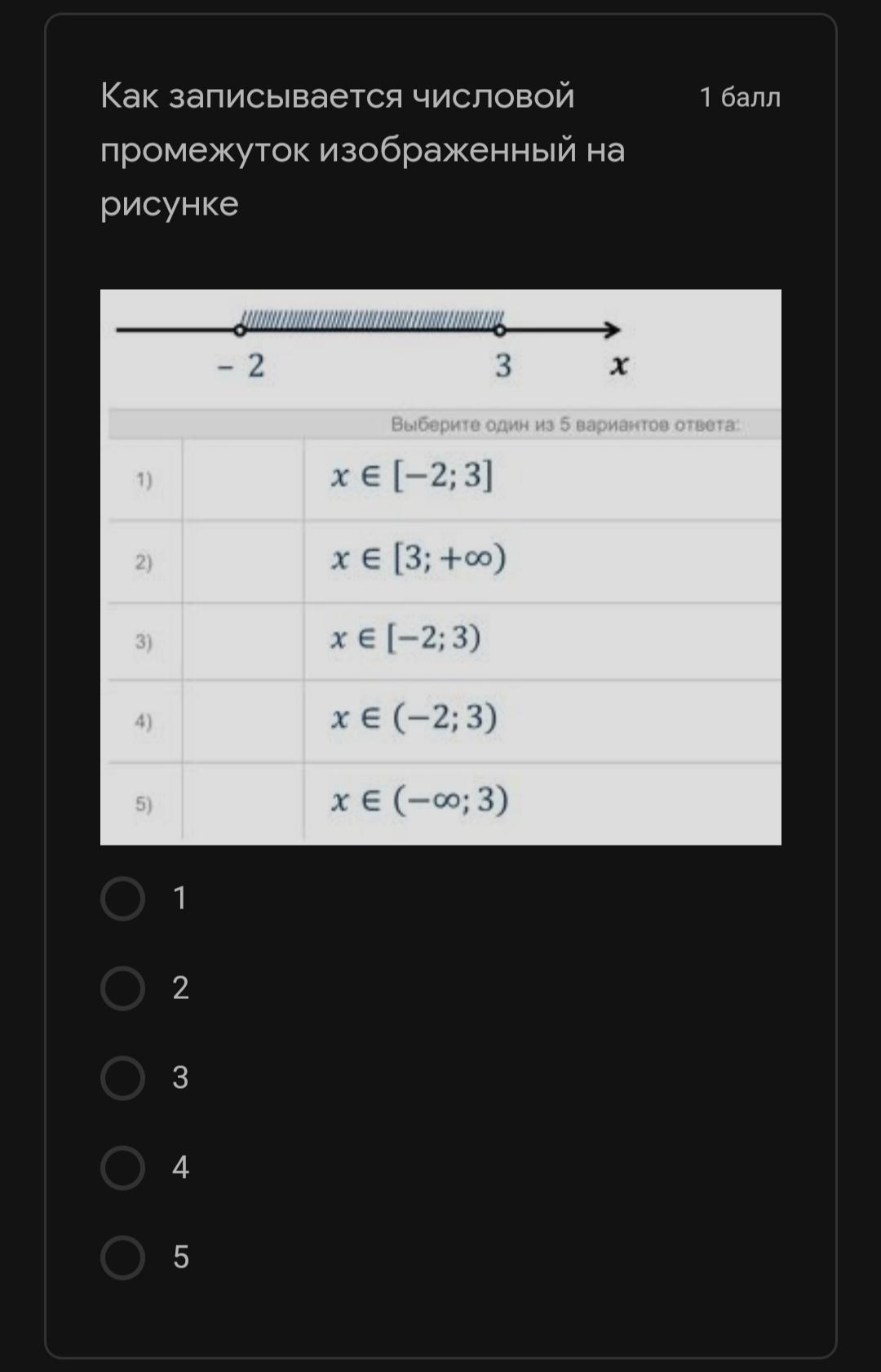 1-вопрос. 1) [-2;3]