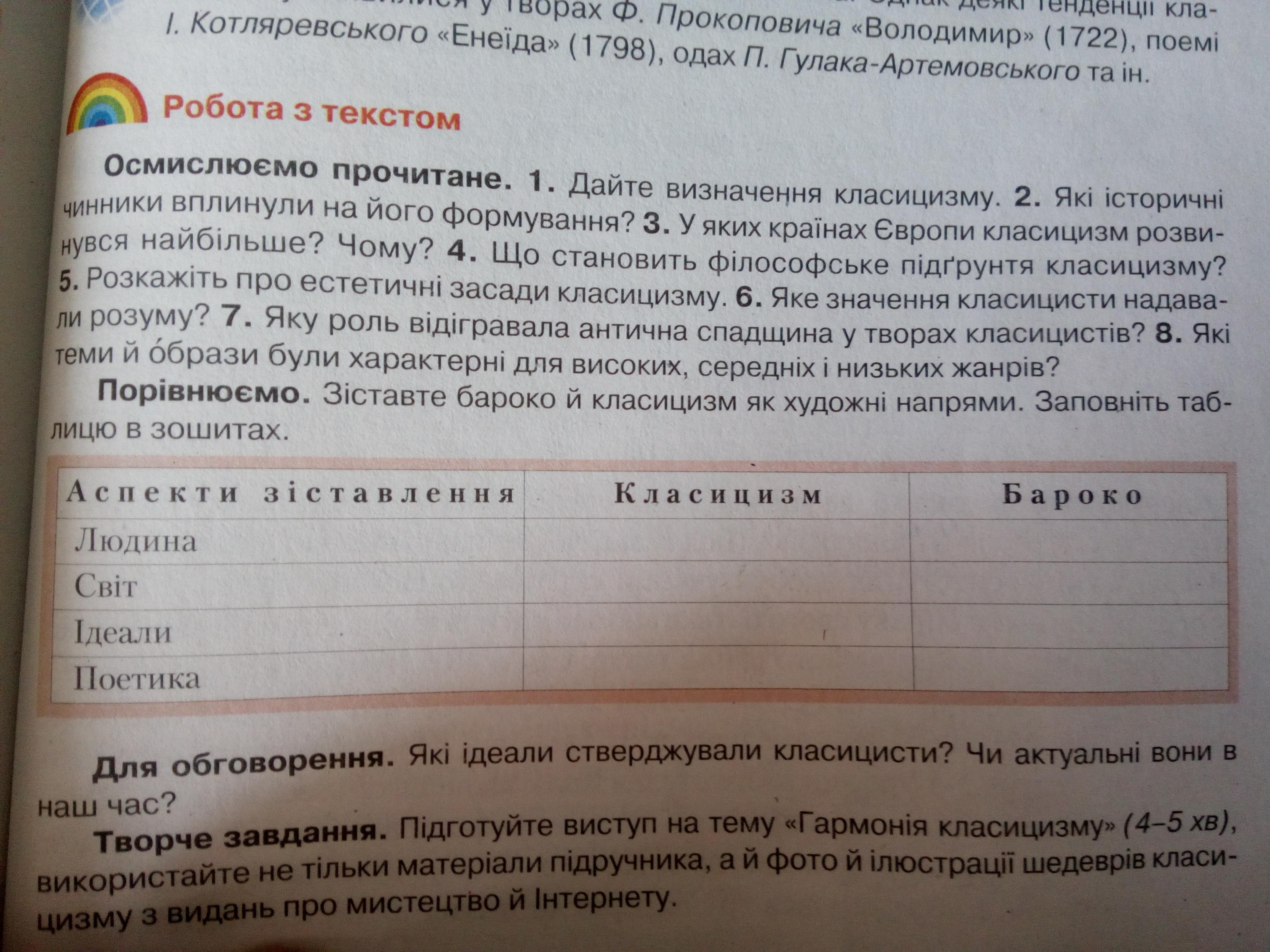 Зарубіжна література 8 клас. Таблиця аспекти зіставлення.