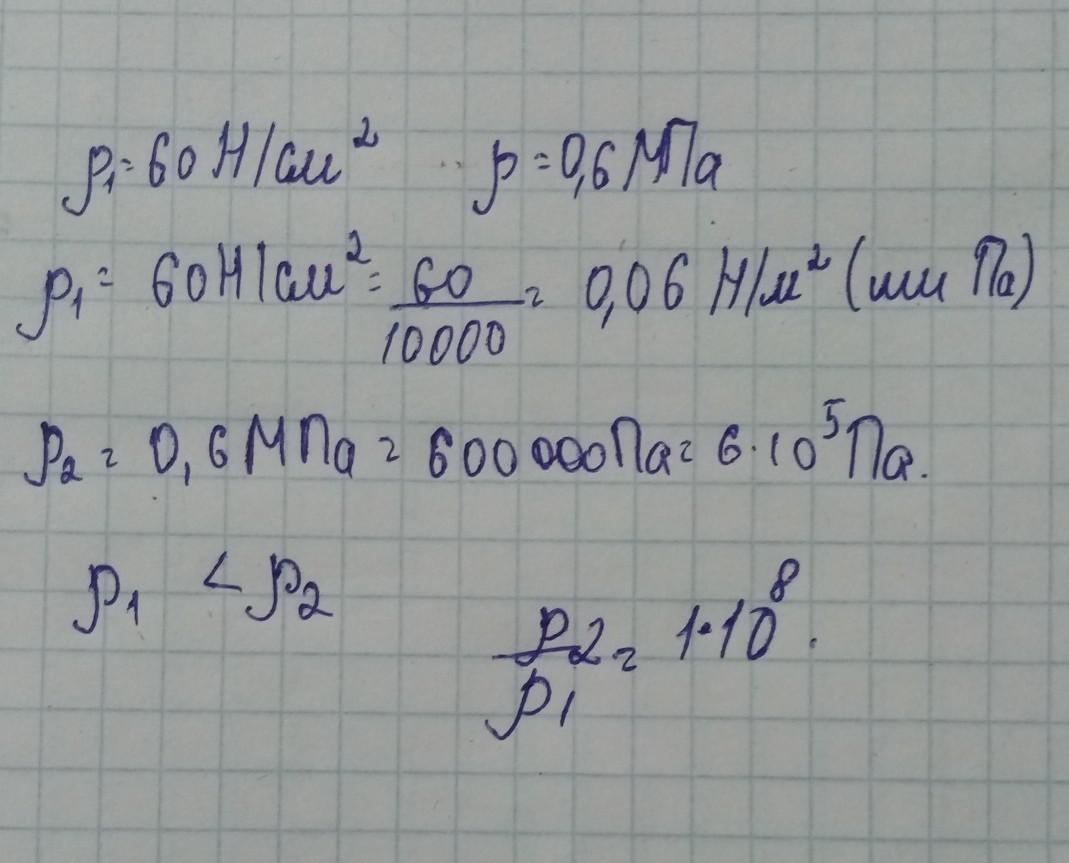 60H/cм²=600 000H/м²=600 000 Па