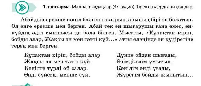 Тірек сөздер: Абай, өлең, ән, күй.