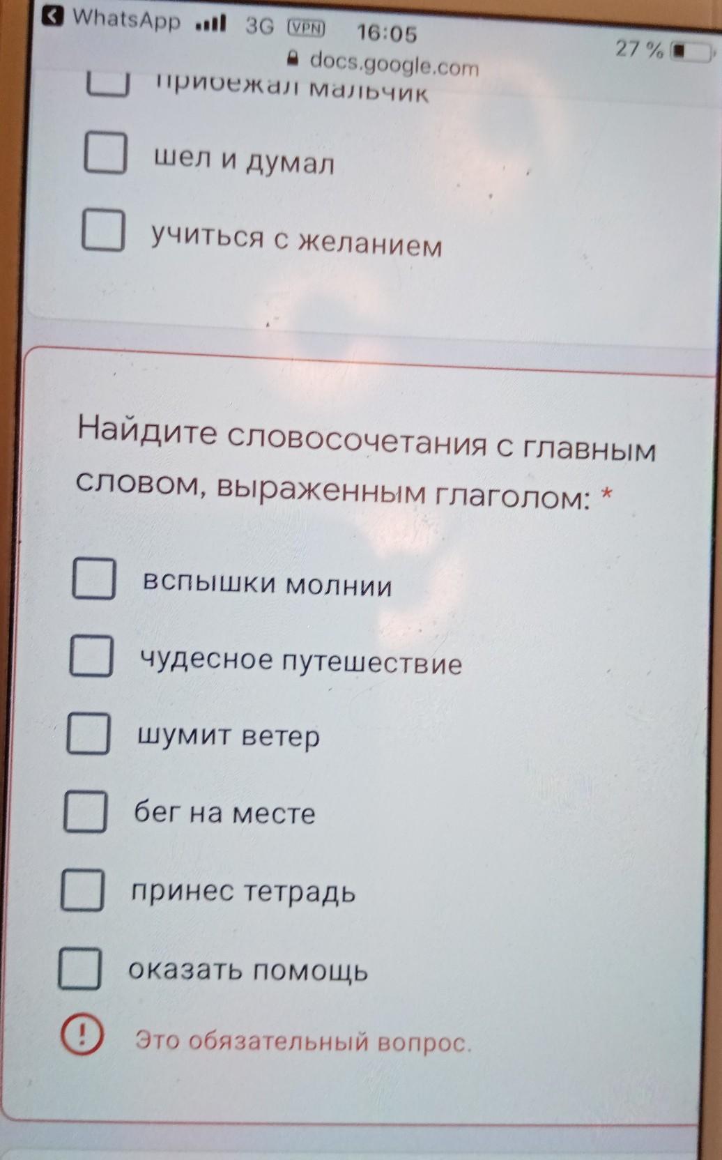 Найдите словосочетания с главным выраженным глаголом вспышки молнии, чудесное путешествие шумит ветер, бег на месте, принёс тетрадь оказать помощь