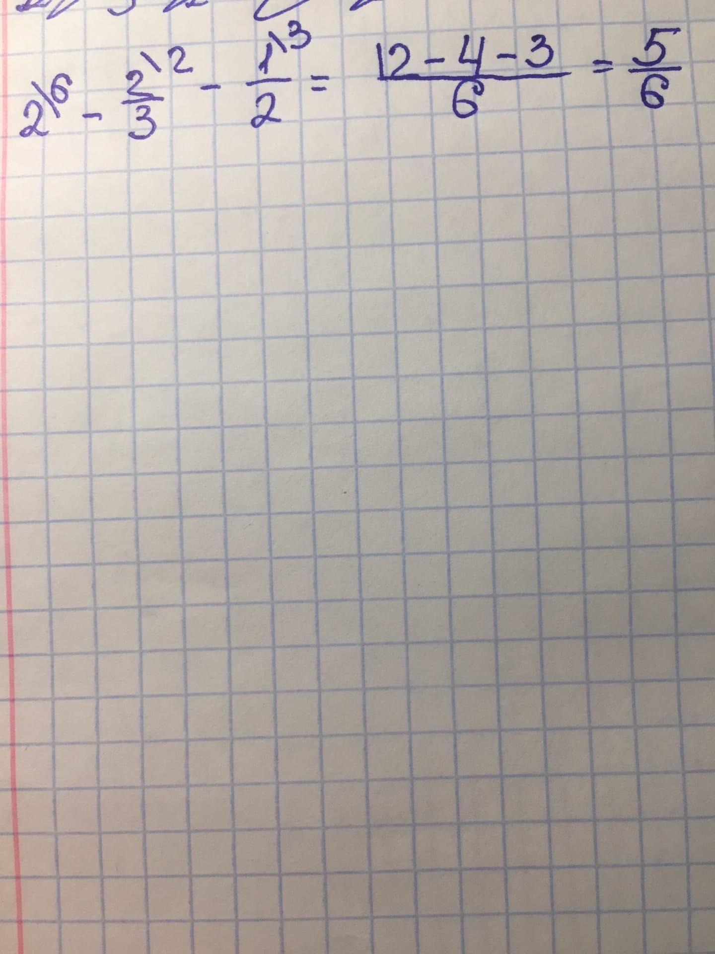 1 1\3-1/2=1 2\6-3\6=8\6-3\6=5\6