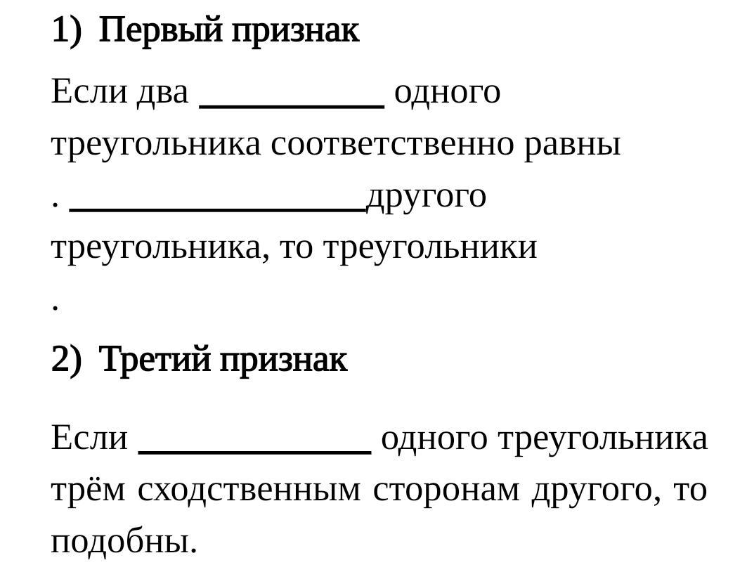 2) Если три стороны одного треугольника пропорциональны трем сходственным сторонам другого, то подобны