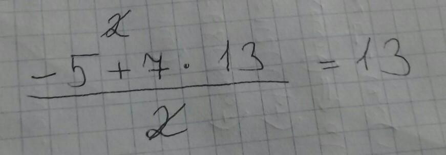 Сумма равна 13. ( по формуле для вычисления суммы в прогрессии S=1ч+nч*количество членов и разделить на 2)