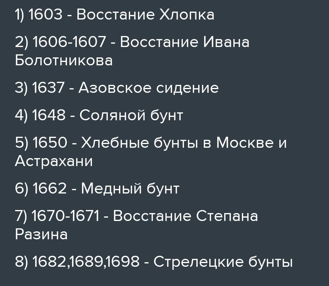 Нужно составить хронологическую таблицу народных выступлений в 17 веке.