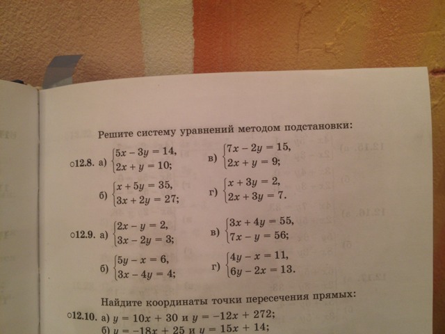 Тогда в первом выражаем х, получается х=5-2у. подставляем его во второе вместо х, получаем 2(5-2у)+у=9