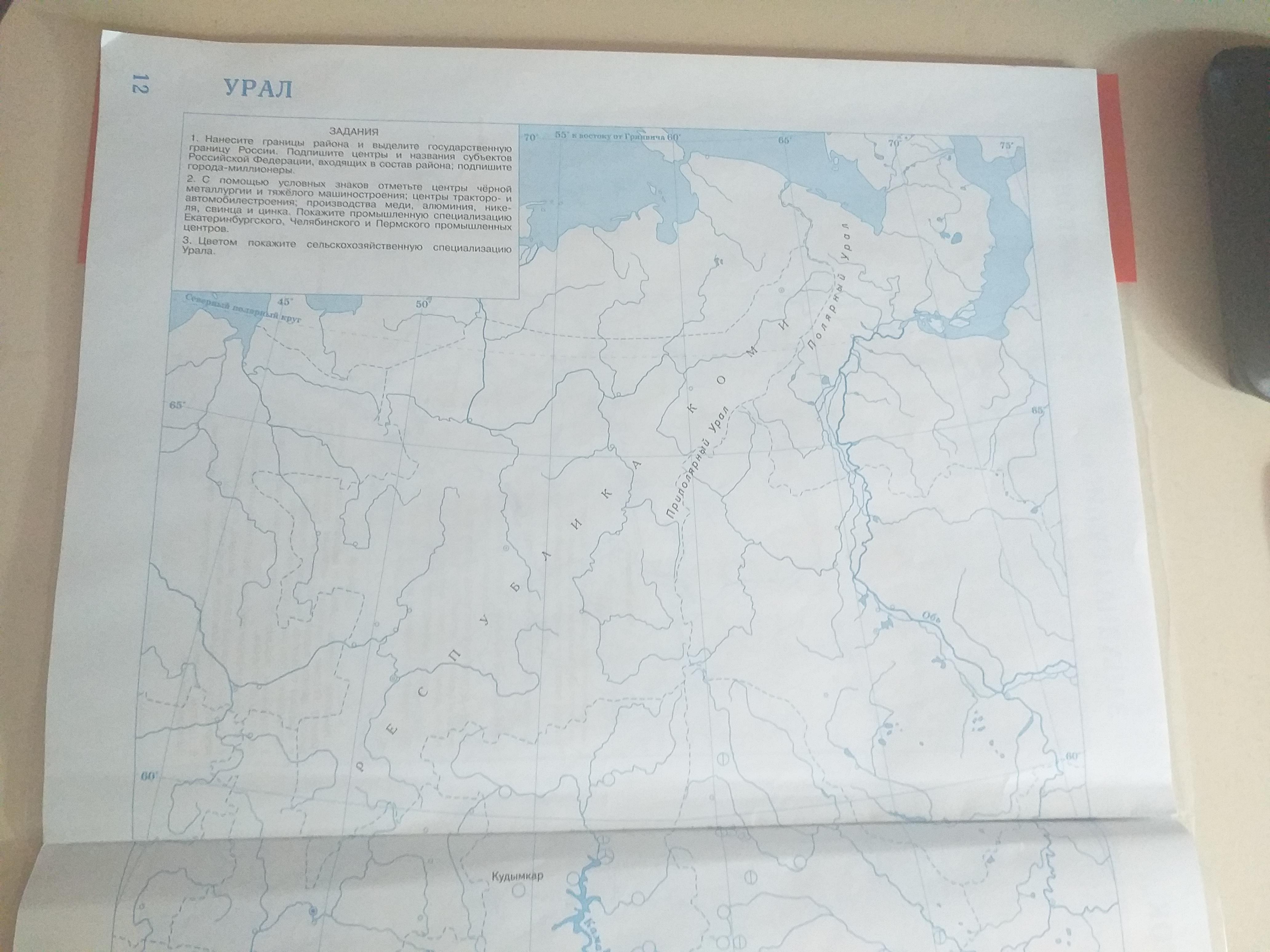Помогите с контурной картой урала