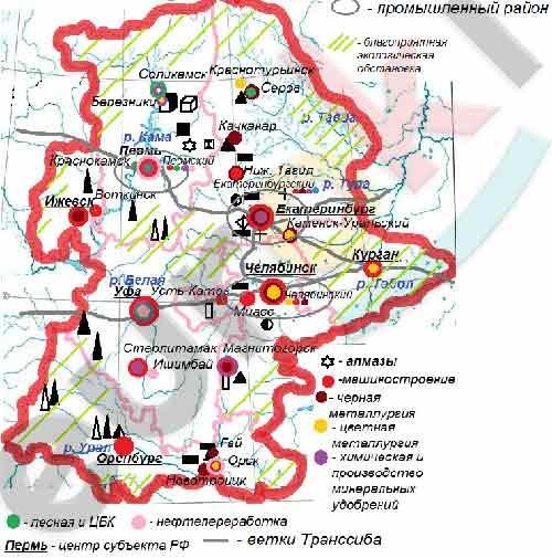 Покажите промышленную специализацию Екатеринбургского, Челябинского и Пермского промышл центров